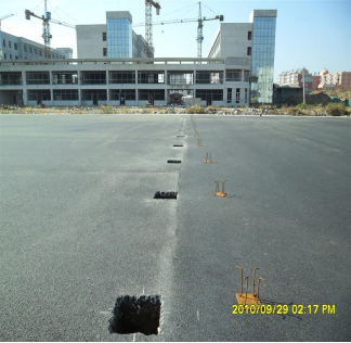在地面上按一定间距(立柱中心距)挖预埋坑,坑的边长约是预埋件钢板边长的2倍,坑的深度比预埋件高度大最少10厘米。比如预埋件钢板为20×20cm, 高35cm, 那么预埋坑边长为40×40cm,深度为最少45cm。