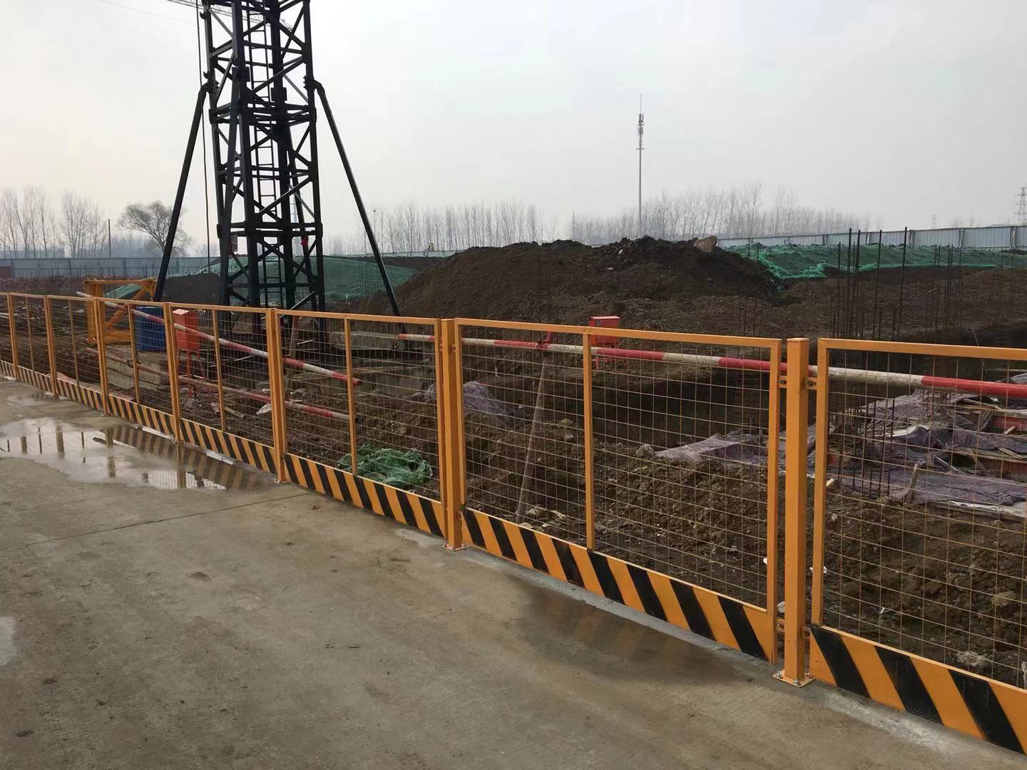 表面处理:主题部分一般为白色,警示色可选黄色或者红色,并在基坑护栏网上焊接一块铁板,喷涂“禁止翻越”“当心坠物”等警示标语。